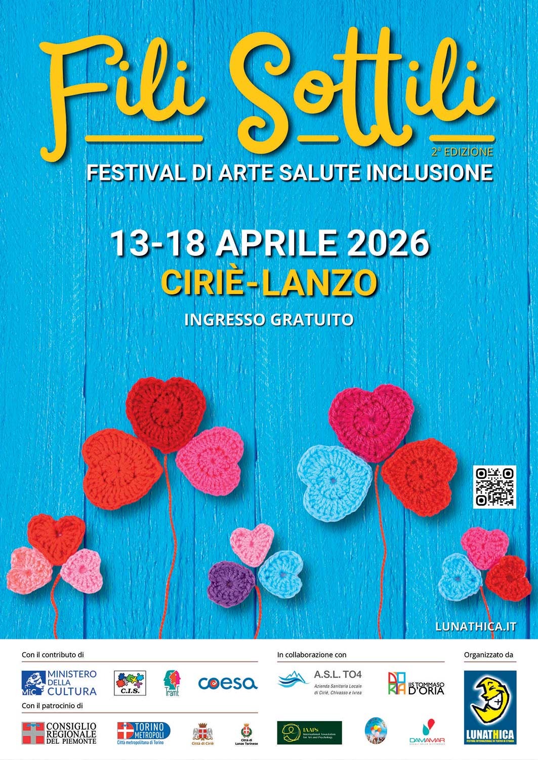 Dal 13 al 18 aprile 2026 nei comuni di Ciriè e Lanzo Torinese si terrà la 2° edizione di FILI SOTTILI – Festival di Arte, Salute e Inclusione.